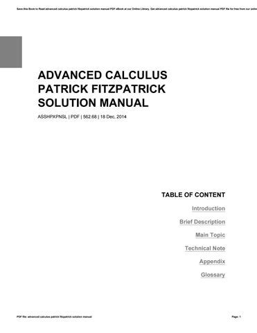 Read Online ADVANCED CALCULUS FITZPATRICK SOLUTIONS MANUAL FREE PDF